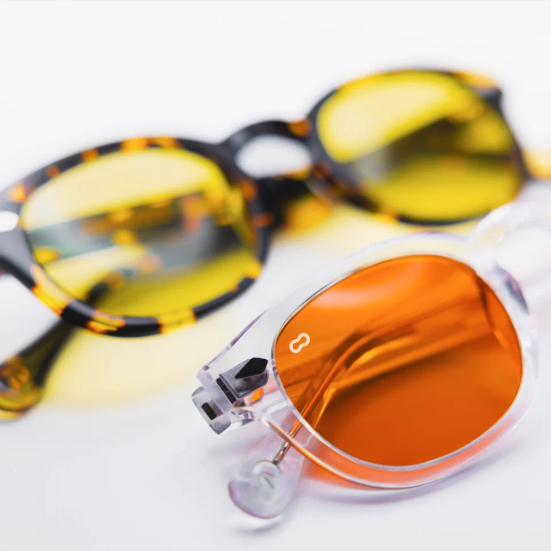 Por la noche, las lentes naranjas bloquean la luz azul y verde, favoreciendo la relajación del cuerpo y una preparación natural para dormir mejor.